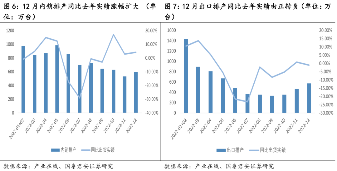 分公司看,内销排产中海尔和奥克斯表现较好,其中海尔同比涨幅扩大明显;出口排产中奥克斯表现较好,12月排产同比去年实绩延续高增态势。